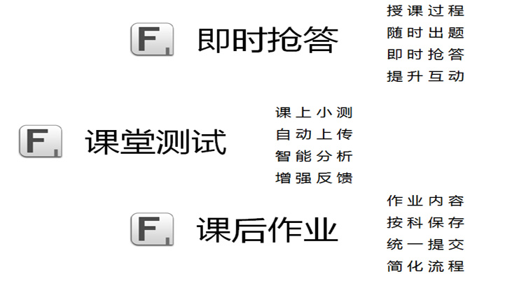 以往的授課,基本上是老師單向的傳授知識,學生是否掌握無法準確判斷,只能根據授課教師的主觀判斷。通過使用無線答題機,老師在講課過程中或講完課后,出上幾道小題,馬上就能準確知道學生的掌握情況,實現了雙向互動,同時達到了一課一清的目的。