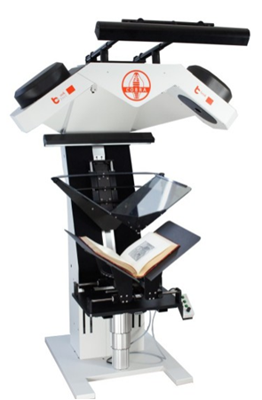 書本托架: v型電動化布局工作臺可以處理帶脊高達(dá)25 cm和處理重達(dá)30kg的書本,全自動電動V型光學(xué)級高精度玻璃壓稿臺。