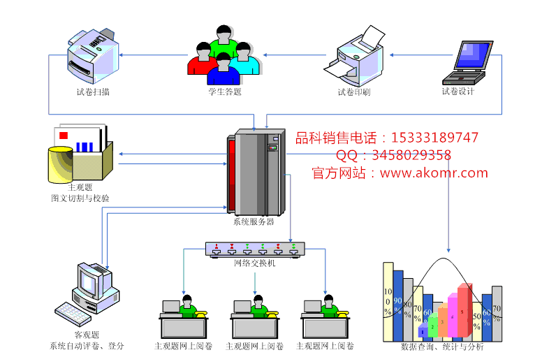 1)減輕教師負擔,提高閱卷效率(老師的助手 提供詳細的成績分析管理報告,為教學改進提供依據。)